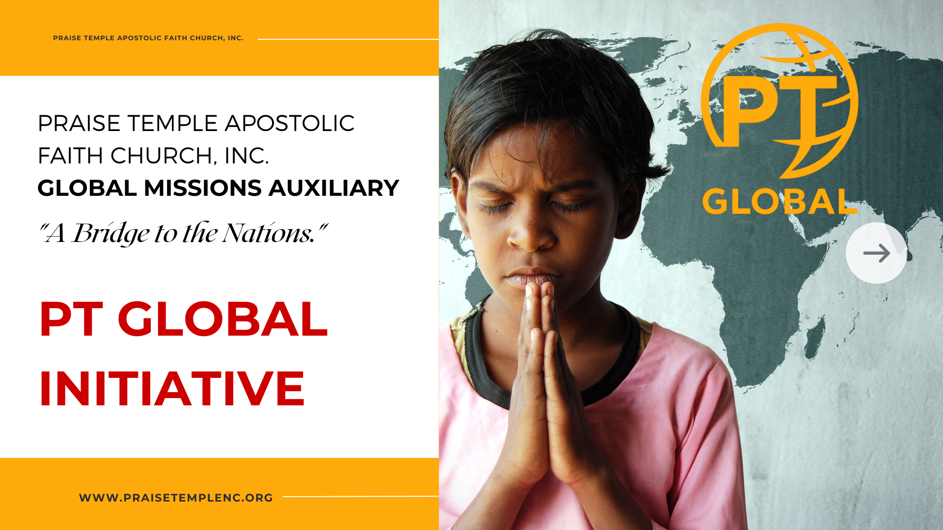 - PT Global is an initiative of Praise Temple Apostolic Faith Church, Inc. Global Missions Auxiliary